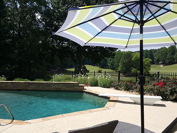 Million dollar view! Comes with stately 6BR/5BA open floor plan home built on Builder Reserved quiet cul-de-sac lot in prestigious Olde Atlanta Club, districted to Lambert H.S. Enjoy awesome views of golf course and pond while entertaining in the expansive outdoor living space featuring in-ground pool with waterfall spout, stone fireplc, and Trex upper deck. Upgrades include granite counter tops, chefs island, dbl si ded fireplace between brkfast/sunroom and family room, Finished Basement, 3 car garage with built-ins and a 9x9 door to allow for rec vehicles.