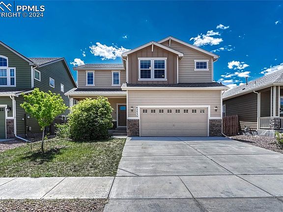 Enjoy proximity to parks, entertainment, dining and schools in this 3,373 sq ft 5BD|4BA|2CAR with finished basement offering hardwood floors, 9 ft ceilings, 4 living spaces and Front Range views. Enter from the covered porch to a formal living and make your way to the great room with Front Range views. Adjacent is a large dining space with hardwood floors and walk-out to the fully fenced backyard with Front Range views. The kitchen features an island with counter seating, hardwood floors, granite countertops, tile backsplash and walk-in pantry. Refrigerator included! A half bath completes the main floor. Head upstairs to find a large loft with several windows and then on to the primary bedroom featuring an adjoining 5-piece bath with soaker tub and updated tile in the walk-in shower. Rounding out the upstairs are 3 additional bedrooms, two which have a Front Range view, and a full bath. Note the convenient upstairs laundry space. Washer and dryer included! The finished basement features a 27’x14’ family room where construction has been initiated on space pre-plumbed for a wet bar and bar height seating. The 5th bedroom w/walk-in closet and full bath with modern touches complete this level. Additionally, both the refrigerator and upright freezer in the garage are included. Within minutes, you can be accessing the Powers Corridor or Marksheffel Rd.