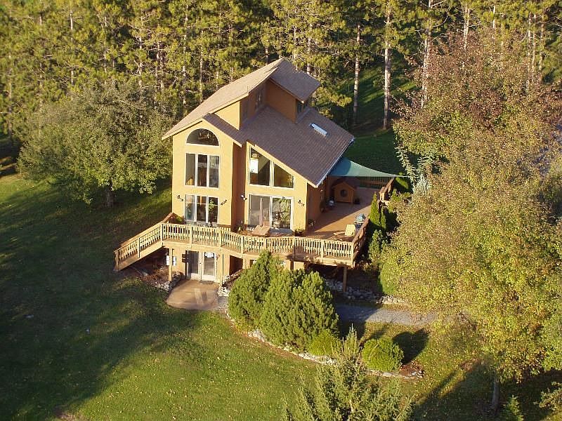 Code #091D. Custom built Contemporary with breath taking views. Spectacular 4 bedroom 3 bath with open living spaces, fireplace in finished walk-in basement, gorgeously landscaped, tons of upgrades including hardwood floors throughout, bathrooms remodeled, kitchen appliances, new French doors, and patio doors, new heating and a/c, new metal roof, and asphalt driveway.