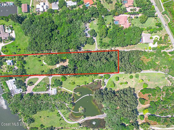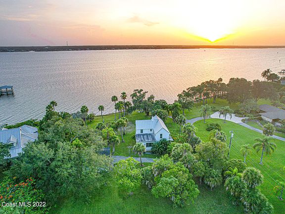 Incredibly rare opportunity to own 3+ acres on the Indian River in prestigious South Tropical Trail of Merritt Island. Rich in history and charm, this 1925 two-story home could become your dream estate. This historic home has 5 bedrooms, 3.5 baths, with a farmhouse porch overlooking 160 ft of unobstructed river views. The property features an oversized two-car detached garage, pole barn, and coquina seawall. Mature trees adorn the lot and create the private sanctuary you have been searching for. Lotus Landing inspires fond memories from its residents as it was formally a hub for the ferry to run between Merritt Island and Cocoa and was a center of community activity. Land and location give you endless possibilities to create truly refined Florida Living!