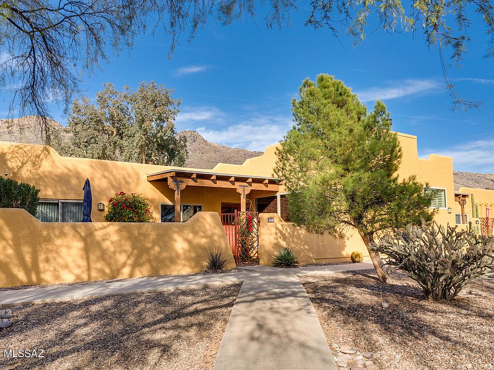 Beautiful two-bedroom, two-bath, move-in ready condominium located in sought after Reflections in the Catalinas. This home features an updated interior with newer windows and patio sliders, a corner fireplace and a relaxing south facing courtyard adjacent to a spacious open common area with desert plantings. Community perks include a gym, spa, pool, landscaping, and fire protection via the HOA. Conveniently located near the DeGrazia Gallery, enjoy easy access to shopping, dining, golf, hiking, and recreation. This home comes with an assigned covered carport, convenient to EV charging stations, and plenty of guest parking.