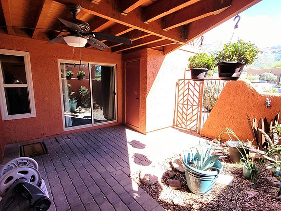 You need to see this beautiful 2 bedroom, 1 bath, first floor, end unit condo nestled up in the foothills! This home has stellar mountain views with excellent natural walking areas and just steps from the pool. This allows you to view the desert mountain with it's plants and animals year round. A great foothills location that is low maintenance and just minutes from golf courses, shopping & schools. End unit allows for privacy and includes it's own private courtyard w/ sitting areas and wrought iron gate. The owners have replaced all windows with energy efficient dual pane. Home contains no carpet, reverse osmosis and has a cozy living room with real wood burning fireplace. Stacked washer and dryer, fridge, microwave, dishwasher, range, 2 Carport spaces! Big community pool, spa! HOA includes water, exterior maintenance, pool, spa, fitness center, clubhouse, sewer, garbage collection, roof, termite, exterior maintenance & fire. This one won't last!