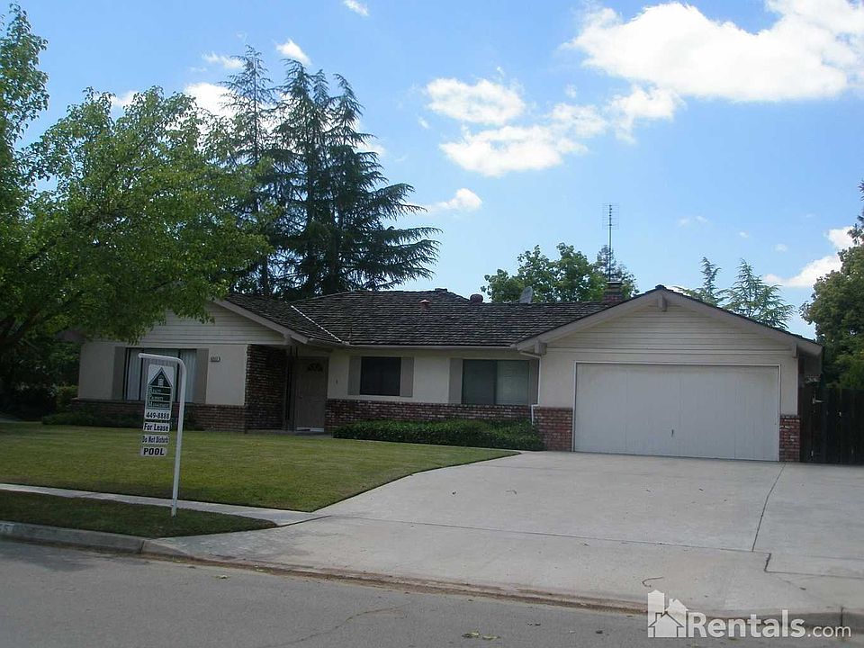 S/ Sierra, W/ Marks Matured landscaped 3 bedroom/ 2 bath approx 1900 sq ft on a 1/4 acre lot. Home features a living room and family room. Full wall fireplace with built in bookcases in family room. Has a large inside utility with desk area and pantry. Ceiling fans in all bedrooms and family room. Over sized 2-car garage with lots of cabinets and work area. Extra area at side of house for small trailer or boat. Wrought iron fenced pool and large covered patio. Home also has whole house fan. Outside pets only with discretion and an additional $500 deposit. Rent includes pool and yard care.