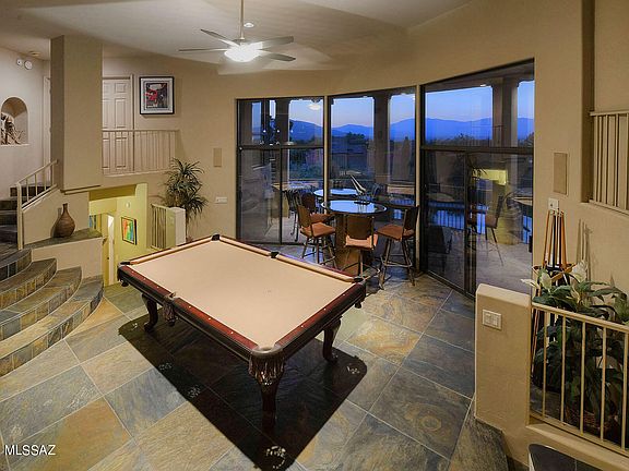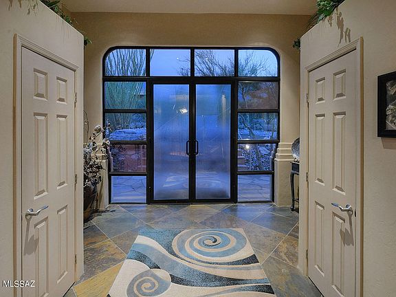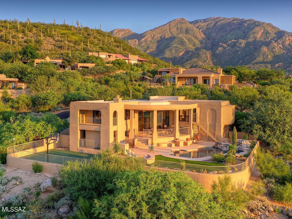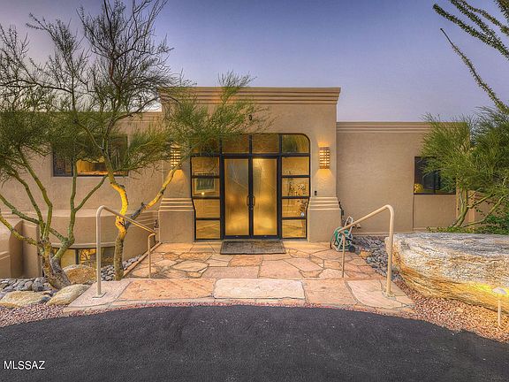 * Sellers will accept or counter offers from $997,500 to $1,050,000. This spectacular 3,493 sq. ft. contemporary-style home is nestled high on a hill in popular Alta Vista Estates and offers sweeping city, mountain, sunrise and sunset views! Located on a .91 acre-lot in the Catalina Foothills, this 5 bedroom, 3 1/2 bath residence has been stunningly remodeled by Lori Carroll. Highlights include a grand foyer with etched-glass double doors, an open flowing floor plan, and a dramatic great room with slate flooring, a soaring ceiling and walls of windows with ''see all the way to Mexico'' views. The spacious family room features an expansive picture window, a fireplace, extensive built-ins including stereo equipment with surround sound, and access to a covered balcony with views.