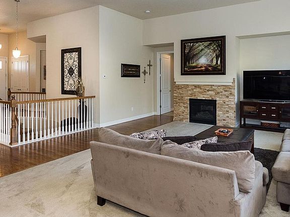 Big Beautiful Ranch w/ Amazing Curb Appeal * Spacious Kitchen w/ Oversized Granite Island w/ Nook Seating * Stainless Steel Appliances Including Refrigerator * 42 Inch Cabinets w/ Neutral Tone Tile Backsplash and Stainless Steel Vented Gourmet Hood * Butler's Pantry Plus Walk-In Pantry * Brand New Upgraded Stone Around Great Room Fireplace * The Ceiling Height (12 Feet) Combined w/ Open Floor Plan Creates The Feel Of A Luxury Home * Granite Counters Throughout Kitchen and Master Bathroom * Roomy Master Bath w/ Huge Oval Tub & Dual Sinks w/ Extra Granite Vanity Desk * Large Fantastic Master Bedroom w/ Coffered Ceiling * Wood Spindle Open-To-Below Staircase Highlights Entry * Separate Formal Dining w/ Coffered Ceiling Plus Kitchen Eating Space * Wood Floors Entry Through Hallways & Kitchen & Eating Space * Main Floor Laundry w/ Utility Sink & Cabinets * Nicely Landscaped Front Yard w/ Four Trees Plus Shrubs * Stamped Concrete Path From Front Yard to Back Yard Stamped Patio * A Wow Home
