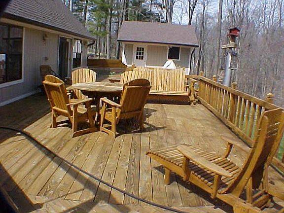 This is not a drive-by! Immaculate light filled earth home w/loads of windows and so many updates.New roof, fresh paint, neutral carpet, living rm w/tiled fireplace.Huge eat-in kit overlooks & walks out to huge full bac k deck that overlooks wooded acreage.Men come look at this huge 2.5+ gar work area & loads of storage beaut. storage cab. A/C too.Gar is fin.& has wood stove & prop. wall unit for heat.This home is pristine condition.