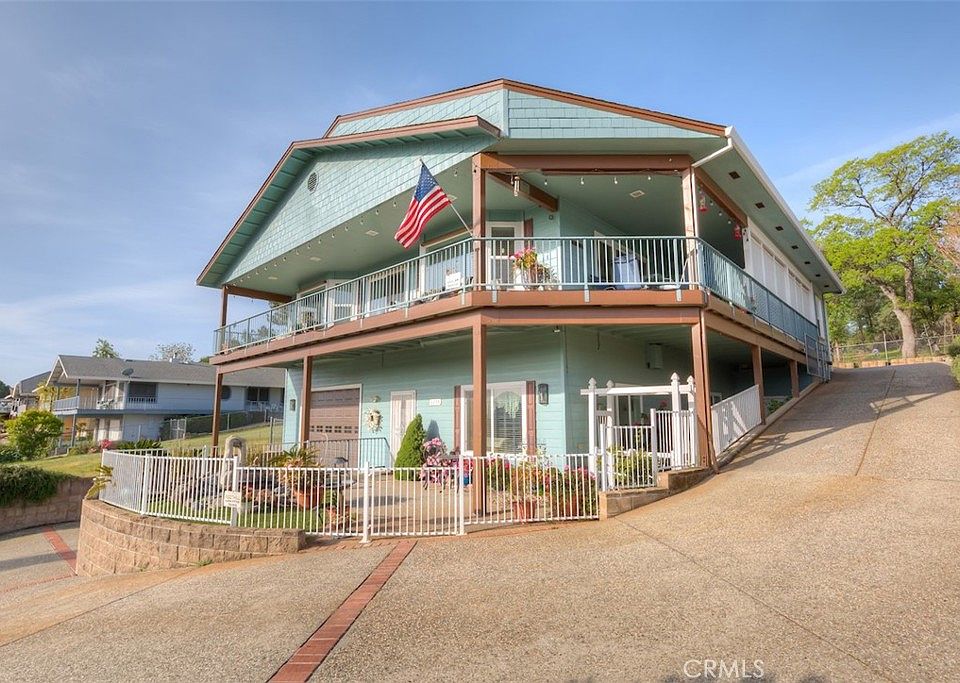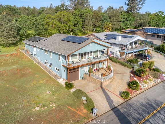 Solar Owned well maintained 4 bedroom 3 & 2 half bath custom home at Lake Oroville. Upper & Lower Garages. 2 parking pads. 2 seperate access points. NEED A PLACE FOR YOU AND AN ADDITIONAL FAMILY MEMBER/S? Situated in one of Oroville's more desired lake view locations just up from Bidwell Canyon Marina surrounded by like properties. A total of 3,175sf including main living area, lower living area & semi detached studio/shop/craft area with 2nd garage. MAIN LIVING LEVEL: Consists of 2 bedrooms, one of which is a master suite. The second offers its own bath. Additional half bath off large laundry/mud room. Massive living area with window views open to chefs kitchen with island. Vaulted ceilings. Expansive wrap around decking with hot tub, multiple outdoor seating areas, panoramic lake & mountainous views. LOWER LEVEL: Accessed by privacy stairwell, access & modern style chair lift. Perfect for the elderly or handicap member of the family needing to accompany you in your move. Or easily remove if not needed. Lower level in a sense feels like it's own home with individual living, kitchenette with bar, full bath & 2 bedrooms. Large storage room. Wrought iron fenced in view patio. As well as an oversized garage door with plenty of storage space for your toys. Both upper & lower areas have their own access points & parking areas. Side auto gated drive leads to upper pad with garden area. SEMI-DETACHED SECOND GARAGE/CRAFT ROOM: Multi use area consists of interior living space, closet, workshop area, half bath & deep garage with ample storage. Perfect Man/Woman Cave as well! Large list of beneficial amenities both in & out with this comfortable home. Please use showing time and provide verification of qualifications prior to arranging showings. (IMPORTANT NOTE: ADJACENT EMPTY LOT TO LEFT OF HOME SAME OWNERS MAY BE AVAILABLE TO THE BUYER OF THIS HOME AT NEGOTIATED TERMS. Have your agent inquire for details).