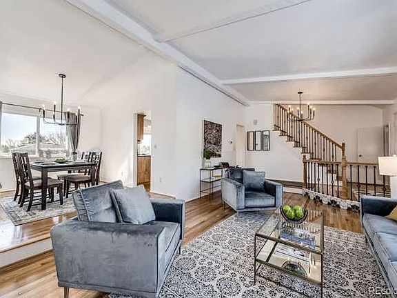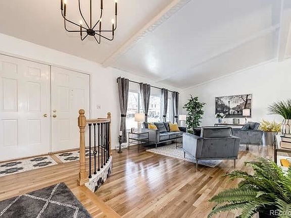 Quiet cul-de-sac location, landscaped backyard with mountain views and private summer entertaining with mature trees surrounding. Modern updates to this multi-level home make it so inviting and move-in ready. Prestine hardwood flooring throughout the main and upper levels. New interior paint and newer windows throughout. Upon entry you will see the custom tile inlay and new stair railings. Modern light fixtures and windows treatments included. Bright, sunlit vaulted living room and dining room. Gourmet kitchen equipped with highend soft-close cabinetry, granite counter tops, custom backsplash, island with Bosch induction cooktop, oven and organizational drawers, all appliances included, a custom desk with a view and pantry. Brand new carpet in the family room with wood-burning fireplace and built-in shelving. Spacious powder room with large walk-in shower perfct for bedroom 4 use. The basement great room is a bonus space for an at-home office or entertaining. Egress window in the basement bedroom. Lots of closets for storage. Clean utility room with new furnace & water heater and laundry room with newer GE washer and dryer. Upstairs is the primary bedroom with walk-in closet and second closet in en suite bath. Dual sinks and ample toiletry storage, updated shower with glass block for additional light. Two more bedrooms and full hall bath with carrara marble tile. Attic fan, ceiling fans in all upper bedrooms and air conditioning. South-facing patio allows for year-round use. Shed on the east side of the house. Newly poured driveway to 2-car garage. Mandatory covenants and voluntary owners association dues offer seasonal events. New community pool built in 2020, tennis courts and open space trail system connects with the Highline Canal. Central neighborhood park. Award winning Cherry Creek school district! Minutes from shopping, Denver's Tech Center, Fiddler's Green and I-25. Checkout the 3D Tour and videos. This is the house you want to call your home!