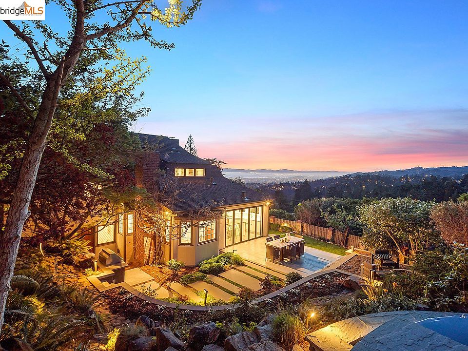 Enchanting English-style home, recently remodeled throughout by award-winning Siol Studios in SF. It is gracefully sited on almost 1/3 acre of sunny, private, fenced and professionally landscaped gardens, with large level lawn, fruit trees (Meyer lemon, apple, passion fruit and pomegranate), an herb garden, and a stunning, custom "infinity-edge" hot tub which accommodates 15 and can be used as a pool. The designer, eat-in kitchen (La Cornue French range, Gaggenau and Miele appliances, Italian marble counters and a cozy fireplace,) opens level out through glass, multi-fold Nana doors to a spacious outdoor dining patio with built-in bbq and rotisserie. A custom concrete fire pit completes this magical experience as do the expansive Bay Views. For the ultimate in relaxation, look no further than the media room with custom built-in-bar, temperature-controlled wine storage and display space, and a big screen t.v. artfully concealed when not in use behind custom sliding wood doors. Minutes to Regional Park hiking, biking and walking trails, Montclair Village for coffee, shopping and dining, Rockridge BART, and highways 13 and 580 for convenient commuting, this architectural gem has it all. Truly this dream home is not to be missed! OPEN SUNDAY 5/7. 1-3:30 PM