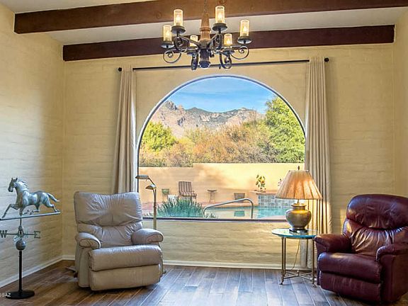 Exquisite Gated Private Spanish Hacienda built by well known & loved ''La Quinta'' builders. Beautiful almost 1 acre lot w/ unobstructed MT views, walled & mesquite surrounded backyard w/ numerous outdoor living spaces & grass area for kids. Fun extras include pool w/ removable fencing, built in BBQ, kiva FP w/ built in seating, brick pavers, & 2 covered ramadas. A TRULY ENTERTAINING PARADISE. Home boasts 3051 sq ft, 5 BD 3 Bath home w/ large LIV RM, beamed ceilings, 3 FPs & Picture Windows that frame the Catalina's to perfection. Remodeled kitchen w/ cherry cabinets, stainless appliances & granite counters. One BD ideal for office w/ built-in desk & murphy bed. Masonry construction stucco w/ new int & ext paint. Substantial upgrades in last few years. District 16 Schools.