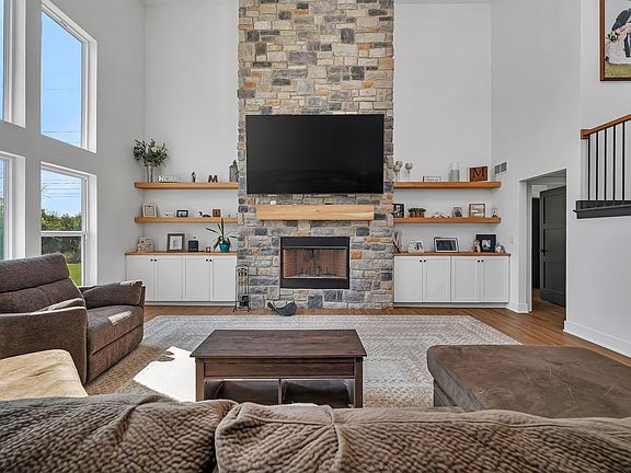 5+ ACRE NAVIGABLE WATERFRONT OASIS WITH PRIVATE MARINA & BOAT DOCK Welcome to this stunning modern farmhouse that perfectly blends timeless style with unmatched amenities. Situated on over 5 acres in the sought-after COAL CITY SCHOOL District, this custom-built 5-BEDROOM, 4.5-BATH home offers rare navigable waterfront access, complete with a private marina, boat dock, and gazebo. Striking curb appeal greets you with board-and-batten siding, stone accents, black trim, and a welcoming front porch. Inside, the open-concept design showcases soaring ceilings, oversized windows, and a dramatic floor-to-ceiling stone fireplace. The gourmet kitchen is a showstopper, featuring crisp white shaker cabinetry, a massive quartz island with seating for six, built-in double oven, stainless steel appliances, oversized built-in refrigerator/freezer, and a 5'x6' walk-in pantry. Every bedroom includes a walk-in closet. Three bedrooms feature private en-suite baths, while two share a Jack & Jill bath. A main floor bedroom and laundry add convenience, and every bath is beautifully tiled. The oversized 4+ car garage (32x28 plus 13x28) easily accommodates full-size trucks, equipment, and recreational vehicles. The full basement with rough-in plumbing and two egress windows provides endless opportunities for future living space. Energy-efficient systems, natural gas, and dual-zone HVAC ensure year-round comfort. Step outside to your private oasis with a covered front porch, expansive covered concrete patio, and upper back deck-all perfect for enjoying breathtaking river views and sparkling sunrises. A fenced area for pets and plenty of space for a future pole building complete the exterior. Located at the head of the Illinois River, this property offers unmatched boating, fishing, skiing, and tubing right from your backyard. With its blend of modern farmhouse elegance, luxury amenities, and recreational paradise, this home is truly one-of-a-kind. A rare opportunity to own a luxury WATERFRONT retreat with privacy, recreation, and stunning natural beauty.