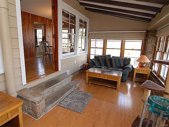 15 MINS from 270~ VACATION LIFESTYLE YEAR ROUND*Can't get much CLOSER TO WATER! Feels like a House boat from inside this CHARMING Lakefront Cottage w it's full wall water views. *Perfect Weekend Or Full time home*Step in & be stunned by it's Wood Beamed Cathedral Ceilings* Hdwd floors * Stone F/p* Open Floor plan allows sunshine to fill the knotty pine walled rm preventing it from going dark*Stone floors in Sun rm office (or sitting rm off the Master)**Updated Kitchen & Bath w Skylight** M/F Laundry* Incredible Community w many year round activities for the whole family.An almost too good to be true kind of neighborhood. *SELLING AS IS* SEE INSPECTIONS* "Right of first refusal" in res Note to Appraisers and Agents. Home originally sold Quickly for $159,900 then inspections found about $50,000 of needed repairs including Active termites + damage (Flooring in 2 rooms need to be pullled up in order to termite treat) , Major electrical, $15,000 bid for water proofing and more.