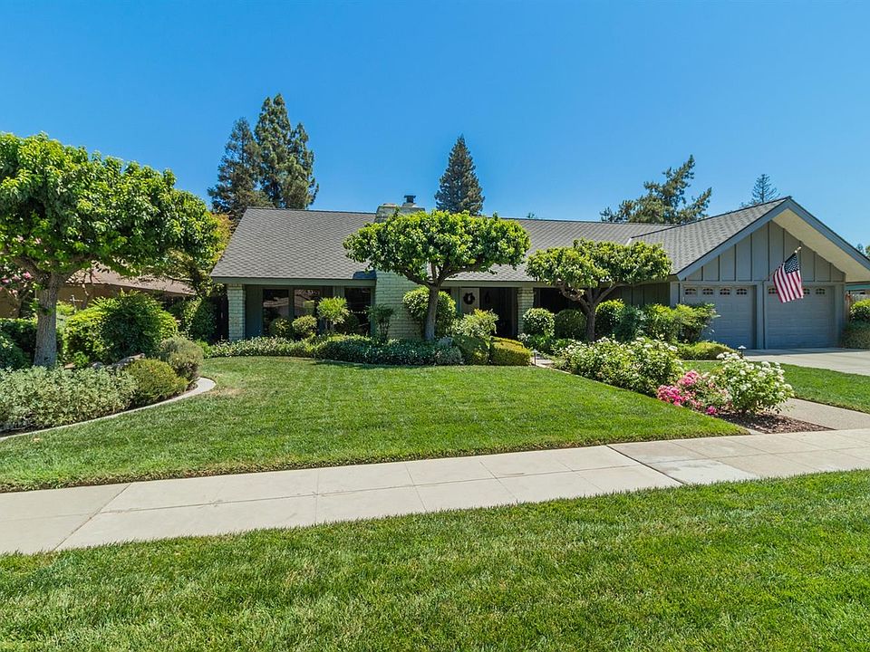 Well-maintained Easterbrook home in quiet northwest Fresno neighborhood with sparking pool and beautifully maintained yard. Architectural wood ceilings in entry, living room, dining room, and family room. Custom built-in, granite-topped cabinets and serving bar with upper glass doors in dining room. GAF Grand Sequoia reflective comp roof and extra attic insulation installed in 2019, Owned solar system and new instant hot water heater system added in 2020. Kitchen remodeled, crown molding, can lighting, coffered ceiling. Gas fireplace inserts in LR & FR. Updated lighting throughout. Recessed lighting in kitchen, FR & master BR. Distinctive ceiling treatments throughout home. Double sink in master bath.