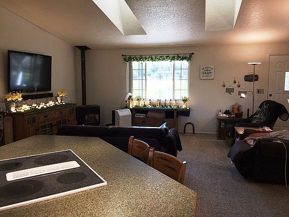 SIngle Level Ranch home surrounded by pastures. 3 Br 2 Ba with open floor plan, bonus room & pantry, plus 780 sf 2 car attached garage, and adjacent stick built storage shed. Glass top range, refrigerator with vegetable drawer, dishwasher, microwave, washer/dryer. Heat with pellet stove or electric. The front of the house features a covered porch, water feature, lawn, strawberry- and flower beds, and overlooks the pastures and pond. The backyard is HUGE, and features a covered patio, greenhouse, lawns, fruit trees, and is deer-proof with 6-foot fence (vegetable garden possible). The pull-through driveway has ample space for parking and storage of hay if needed.