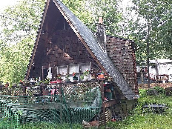 Offering commission for buyer's agent. Cozy A-Frame home. Call Berk for a private showing. Low taxes and dues in a nice lake community featuring a 90 acre spring fed lake loaded with fish and wildlife, boat launch, clubhouse, playground and more. Activities all year round include fishing, canoeing, kayaking, snow mobile riding, ice fishing etc... Nice place to observe wildlife or just relax with friends and family. Open floor plan. Very nice deck, all nice and green around. You will feel the peace. 2 bedrooms plus a small room and rear deck. I cannot tell you how much I love this house but life forces me to sell. Monroe Lake community