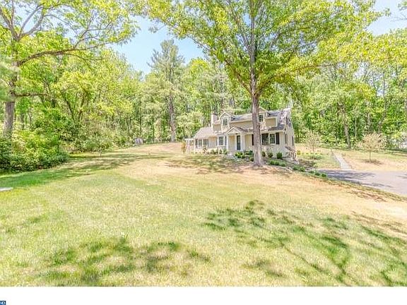 Welcome to this beautifully renovated Country Cape in Solebury. The home has been revitalized with new hardwood flooring, new appliances, new kitchen, new HVAC, new roof & siding, new septic, and new electrical. Custom woodwork and built-in cabinetry. The siding includes a 15 year warranty. Entering the front door unveils the completely renovated living room through French doors with a working wood burning fireplace with repointed original stone. The new kitchen includes all high end appliances including a Wolf range, custom built-in range hood, all custom cabinetry, soapstone countertop, built-in spice rack & step stool. Home offers an abundance of natural sunlight. Special ceiling and trim details throughout. Exudes a rustic feel with modern features. The basement/lower level has a built-in custom cabinetry/shelving, enough space for a recreational area/workout room/office. Access to the 1-car attached garage is through the basement. Home sits on 2 gorgeous wooded acres, perfect location for a pool upon the hill near the shed. Master bedroom includes a walk-in closet with built-in shelving, fully remodeled master bathroom with a to-die-for shower. Walk out back to the exceptional blue stone patio & quality landscaping. Remarkable location, just minutes from both New Hope and Doylestown Boroughs.