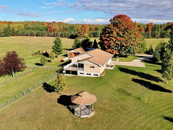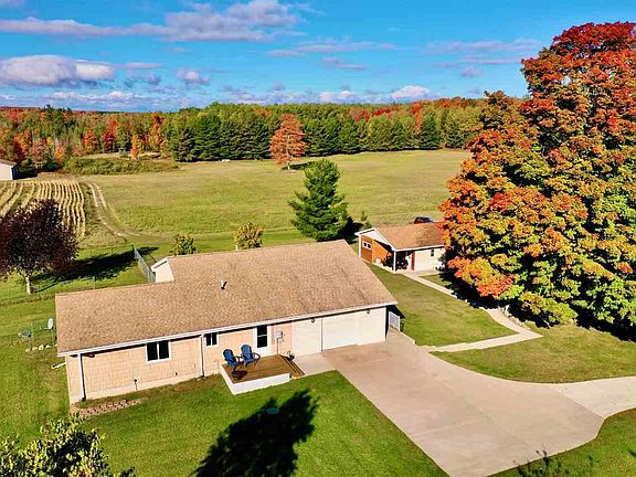 Enjoy the lifestyle you've always dreamed of on this 46-acre homestead package in Northern Michigan that adjoins thousands of acres of State land - close to the Manistee River! Fantastic location on a blacktop road, just 20 minutes from either Traverse City or Cadillac. So much beauty, privacy and seclusion! Nearly 2,000 square feet of living space in the recently updated open concept home. Walk through the new front door into the remodeled entryway--all new vinyl plank flooring throughout and tongue and groove knotty pine interior give it a great Up North vibe. Spacious kitchen just underwent extensive renovations including new center island, countertops, backsplash, sink/disposal, under-cabinet lighting and fixtures, and all new appliances. Two living rooms on the main floor, as well as two bedrooms (second bedroom is being used as a home office) and an attached garage. Large master suite with full private bathroom. New half bath on main floor with laundry. Beautiful 4x8 picture windows showcase glorious views of the changing seasons. Full walkout lower level with large family room and approx. 1,000 square feet of unfinished space ready to be outfitted to meet your needs if desired. Other property highlights include a second detached, heated garage with concrete floors, hot/cold water, a half bath, and two electric overhead doors. The 32x40 pole barn has concrete floors and is perfect for storing equipment or larger outdoor toys. Property is set up for dogs with dog doors and fencing. It is also suitable for horses and other small farm animals. The wooded acreage has proven successful for hunting and boasts six ponds, a creek, as well as a raised 8x8 deer blind. Owner attests to plenty of wildlife, including deer, turkeys, bear, geese, ducks, eagles, bobcats and coyotes. Home also is wired for a generator and has central A/C, an owned 1,000 gal. propane tank and a gazebo!