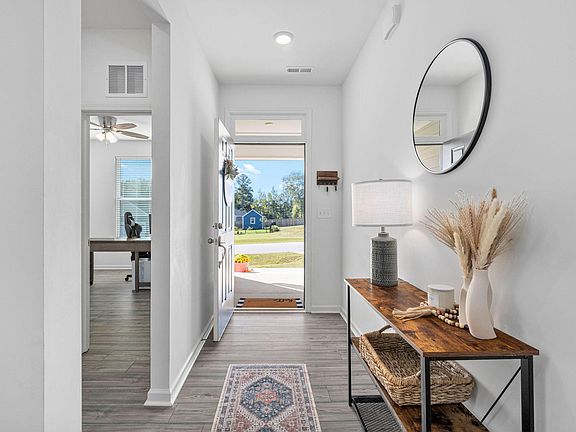 Why buy new when you can own a 2023-built home that feels brand new for so much less? Welcome to Sauls Glen—a peaceful Raleigh community that offers the perfect blend of modern comfort and convenience. This stunning 4-bedroom, 3-bathroom home with 2,444 sq. ft. sits on a .62-acre flat lot, giving you all the space you need to relax, entertain, or play. Step inside to an inviting open-concept floor plan featuring 9-foot ceilings and durable LVP flooring throughout the first floor. The chef's kitchen is the true heart of the home, with white quartz countertops, a navy-blue accent island with seating, 42'' shaker-style cabinets, tile backsplash, and stainless-steel appliances, it's the perfect spot for hosting or enjoying a night at home. The adjoining dining and family areas flow seamlessly to a screened-in back porch, perfect for outdoor entertaining year-round. A first-floor guest suite (or mother-in-law suite) offers flexibility for multi-generational living or a private office space. The full bath features a walk-in shower along with a spacious vanity for additional storage. Upstairs, a spacious loft provides the perfect setting for movie nights, a playroom, or a home gym. The primary suite is a true retreat with an oversized walk-in closet and a luxurious bathroom featuring a dual-sink vanity, linen closet, and a beautifully tiled, seated, walk-in shower. Built to ENERGY STAR® standards with vinyl siding, this two-story gem offers both efficiency and style. Located just under 3 miles from the new Publix and within 8 miles of White Oak Shopping Center, restaurants, and everyday conveniences—this location offers easy access to everything you need while maintaining a peaceful suburban feel. This special home has it all—modern design, energy efficiency, and a prime Raleigh location. Don't miss the opportunity to make this nearly new home your own!