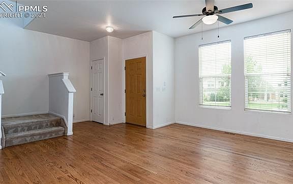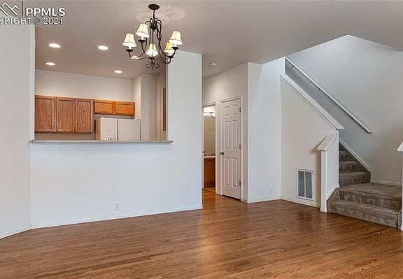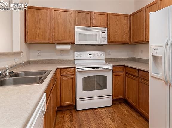 Fantastic interior-unit townhome in an excellent location. As you enter, you are greeted by a spacious living and dining room area that boasts large windows and hardwood flooring. The kitchen has plenty of cabinet and counter space and also has hardwood flooring along with access to the oversized 2-car garage. Adjacent to the kitchen you will also find a half bath with crawlspace access. Upstairs you will find 2 bedrooms and 2 full bathrooms. The master features vaulted ceilings, an attached master bath with double vanity and walk in closet, and freshly cleaned carpet. The second bedroom also features carpet along with a spacious closet and is serviced by a separate full bathroom. The upper level also holds the laundry facilities with the washer and dryer included in the sale. This home is also located near shopping and fitness centers along with The Powers Corridor and District-20 schools. Don't miss out!