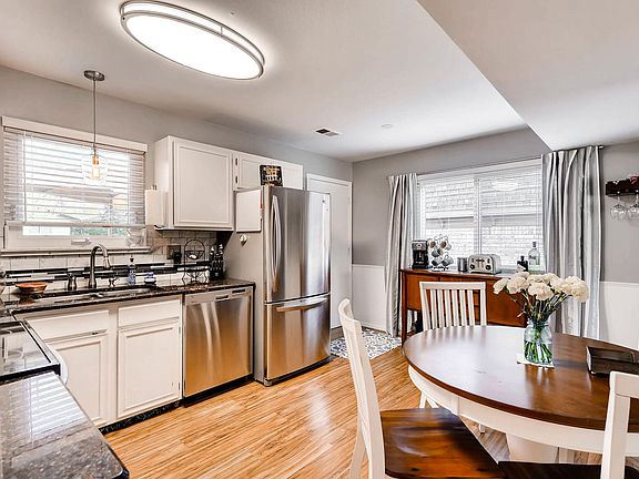Neatly maintained and stylishly upgraded 3 bedrooms and 1.5 baths, 1200 sq ft home in centralized Bear Valley area in Lakewood. A true charmer, this chic home features an updated kitchen with granite countertops, marble-tile backsplash, all LG stainless steel appliances and breakfast table area. Walk-out to the entertainer's exterior, enjoying Trex deck, garden beds and fenced yard. Living room with beautiful wood-burning fireplace and brick mantle to cozy up to. Updated main level flooring and windows. All private three upper level bedrooms and Master bedroom with peak Front Range views. Incredible location sits within 1/2 mile to RTD and just a one minute walk to Kendall Park! Surrounded by multiple parks, trails and your choice of favorite golf course. Quick access to shops, restaurants, markets, US-285 and Wadsworth Blvd. Less than 20 minutes drive to world-famous Red Rocks Amphitheater! Take advantage of this great opportunity...will sell fast!