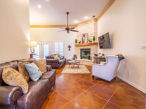 BIG NEWS-$10,000 PRICE REDUCTION ON THIS GORGEOUS HILL COUNTRY SETTING!!! This 3 bedroom/2 bath brick and Austin stone home with approx. 12 acres will be sure to please anyone looking for a bit of privacy. Enjoy the MANY Oak trees, lots of shade and rolling terrain. Totally fenced...even high fenced, cross fenced, gated entry and there is a separate fenced backyard for kids and pets to enjoy as well. A spacious open floor plan that's great for entertaining family and friends. Custom cabinets, granite countertops and wood burning fireplace all add to the charm of this amazing private retreat. There is a bonus heated and cooled office area/storage for convenience in the garage. Enjoy the horse stalls near the large insulated workshop with overhead door. Behind the workshop is separately fenced acreage perfect for horses or livestock. There is a concrete slab kennel area for 6 for the dog lovers! This property has it all- stunning home and hill country surroundings on 12+ acres!
