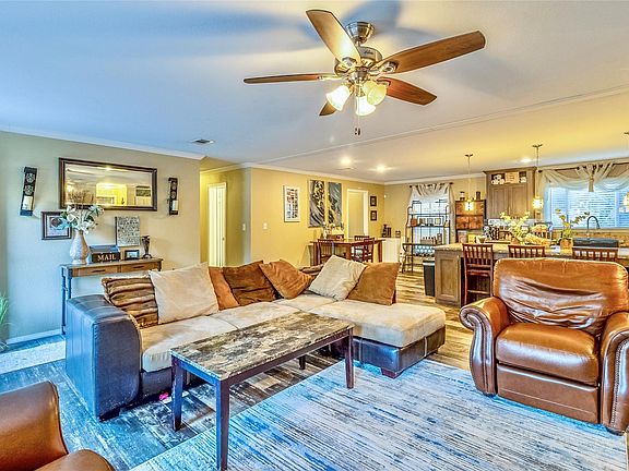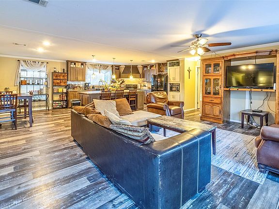 2018 Clayton Home with 4 bedrooms and 2 bathrooms. This home is a cook's dream with an open concept living space showcasing the kitchen's large island with seating. Granite countertops, a large, farm sink and a double door refrigerator that conveys are highlighted features as well. The primary bathroom does not disappoint with a double sink vanity, garden tub, and separate double-entry shower with bench. This home sits on a 1.42 acre corner lot surrounded by pines. The property also has a two-garage door storage building that could be used for a workshop and a 916 sqft 2-bedroom farmhouse that is waiting for the right owner to restore it.