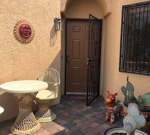 * Located in the sought after Sunset Ridge Townhome Community, this 2 bedroom-2 bath home is clean and move in ready. Kitchen features eat-in breakfast nook, and generous pantry. Porcelain floors, neutral interior paint and formal dining area. This end unit offers no homes to the immediate north of you and separated in the rear yard by a common area wash. Enjoy the welcoming courtyard entry and rear patio with views of Pusch Ridge Mountain. This community is tucked away off Oracle Road with a quite feeling and yet minutes to shopping and restaurants.