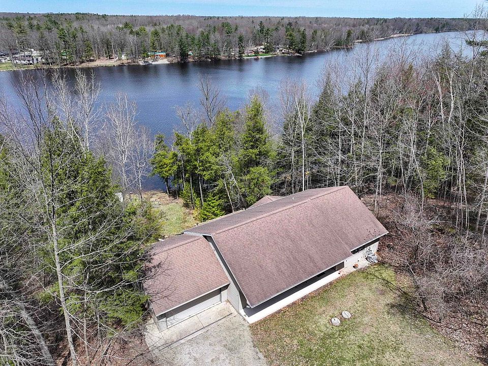 Experience breathtaking waterfront views from this Machickanee Flowage home! The open-concept upstairs features Brazilian oak flooring in the living room and bedrooms with main bedroom including a walk-in closet, and Italian tile in the kitchen and bath. A granite island and ample natural light create a warm, inviting space. Enjoy first-floor laundry for added convenience. The finished walkout basement boasts wood siding, a hot tub room with working hot tub, and a sauna, plus piping ready for a third bathroom. Step onto the spacious back deck and take in the beauty firsthand—schedule your showing today! Note- Basement is sealed concrete floor.