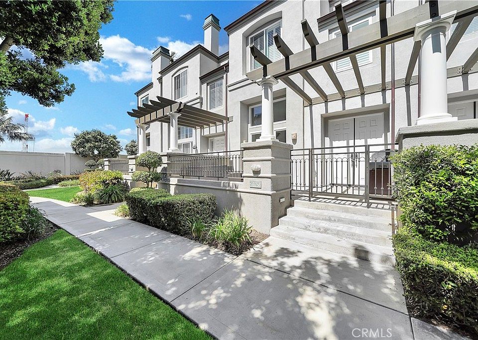 Light & bright highly updated townhome in the prestigious, gated community of Surfcrest just steps to the sand, peek-a-boo ocean views and a short walk to the community pool & spa! The Antigua floorplan features 2030 square feet with two bedrooms plus landing area that can be used as an office and two and a half bathrooms. Well-maintained property with two-story ceilings as you enter into the formal living room with fireplace and sliding doors to lead out to the oversized patio - great for entertaining! Gorgeous neutral hard surfaced flooring throughout, vaulted ceilings, ceiling fans, new LED recessed lighting, crown moulding, custom paint, surround sound speakers, newer dual pane windows, plantation shutters, custom light fixtures and more! Large formal dining room. Gourmet quartz kitchen with countertop seating, stainless steel appliances and newer cabinets that opens up to the family room and balcony with ocean views. Grand master suite with more ocean views, large walk-in closet, and cozy fireplace. The master bath has a soaking tub, a separate shower, and dual sinks. Large, convenient, interior laundry room with utility sink. Large entertainer's patio – very easy maintenance. Lots of guest parking nearby, a fabulous community pool & spa, and award-winning schools! Just steps to the sand, the wetlands, and the famous dog beach!
