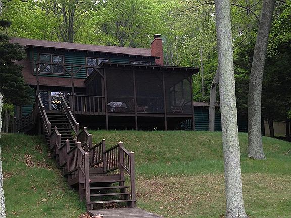 This wonderful 3 acre retreat on the coveted north shore of 5,000 acre all-sports Hamlin Lake is a rare opportunity! This home underwent extensive renovations in 2004, including updated electric and mechanicals, tongue and groove cedar plank ceilings, windows, and the addition of a 2+ stall attached garage, screened porch overlooking the lake and stairs to the shore area. WIFI/INTERNET is AVAILABLE and already INSTALLED. A generator has been installed, allowing the opportunity for uninterruptedyear-round comfort and enjoyment. Sale includes fully-furnished, turn-key 3 bedroom lakeside home with fireplace, dining area, walk-in closets, dock, boat house, 19.8' Sunchaser deckboat, ski equipment, paddleboat, 150' lake frontage, seawall, lawn, full basement, abundant wildlife, and so much more. Cottage sits atop approx. 3 wooded acres with close proximity to Manistee National Forest, Ludington State Park, and Nordhouse Dunes Wilderness Area. This is a place where memories are created!