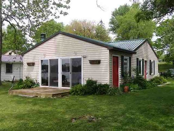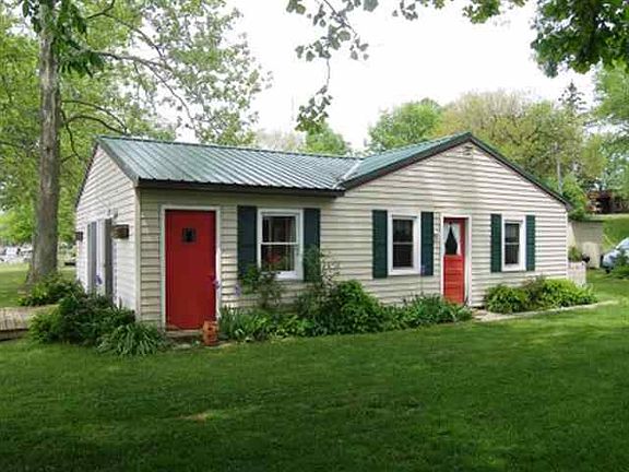Immediate possession available with this prime lakefront get-away on Yellow Creek Lake (150 acres, allows skiing and all-sport activities from 1-4 pm daily). Complete remodel in 2009: metal roof, vinyl siding, insulated windows, drywall, kitchen, plumbing, electrical, EFA furnace, central AC, 4" well & more! Ceramic tiled kitchen & dining room, large lakeside living room with brick fireplace and double glass sliders leading to lakeside deck. North side location on the lake gives sunrises, mid-day sun and serene sunsets. Turnkey property is completely furnished and includes all appliances (range/oven, refrigerator, dishwasher, washer-dryer stack unit) plus pier and storage shed. Level lot, low traffic location, great neighborhood. Panoramic views!