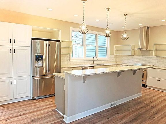 - Kit Dscrp: Window(s) - Picture, Pantry, Countertops - Stone/Granite/Solid, Breakfast Bar / Nook, Kitchen Island, Stainless Steel Appliances, Wet Bar, Open Floor Plan, Recessed Lighting, Flooring - Laminate, Paints & Finishes - Low Voc