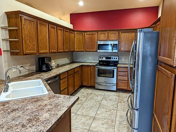 Fantastic home with a wonderful split bedroom floorplan with one very large bedroom set up as a flex room (can be office, den, etc.). Huge kitchen with ample cabinets and counter space, stainless steel appliances, new dishwasher available. Primary bedroom with a 12' x 7' walk-in , tiled shower and jetted tub. Bedroom 3 with walk-in closet and bedroom 4 has a walk-in and direct access to the bathroom. Large combo living and dining area with a gas log fireplace. Wonderful east facing back yard with no current immediate back door neighbor, covered patio with pergola patio cover and built in barbeque pit with shade cover. This is a fantastic home and will not last!!