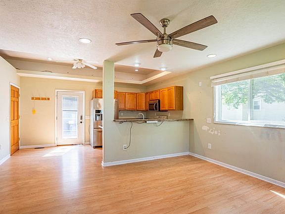 This charming 2-bedroom home features spacious walk-in closets in both bedrooms. The primary bedroom closet even includes laundry hookups—washer and dryer are included! The second bedroom makes a great option for a home office or craft room. Enjoy the open-concept layout of the kitchen, dining, and living areas. The kitchen comes fully equipped with all appliances, and the bathroom features a convenient step-in shower. Step outside to the patio area between the house and garage—perfect for grilling or relaxing. The yard space to the east allows for easy gardening with water line availability. Don’t miss the oversized garage, built in 2011, with over 1,000 square feet of space. The west stall has been used as a workshop. It includes an abundance of outlets and electric heat. The entire garage is insulated, making it both functional and versatile year-round. The expansive driveway allows versatility for parking recreational vehicles and trailers