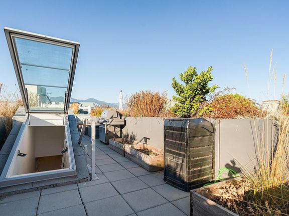 True modernist townhouse in Strathcona/ Railtown! Located among the city's most fashionable restaurants, bars, cafes, galleries. Designed by Gair Williamson Architects w/ interiors by Occupy Design. Only 25 units in the complex, clean contemporary lines. Generous floor plan at an unbeatable price, fantastic private 438 sqft roof top patio with views of the city, the mountains, & the working harbour. Inline, courtyard access orientation with nobody on top. Exposure on both sides, north and south. AirBnB rentals permitted (2 night min.). Roof top deck w/ gas, water. 1 secure parking space & 1 storage locker included. EV charging/ bike storage is available in the parkade. Walk everywhere from this location. More info on our web site, look us up!