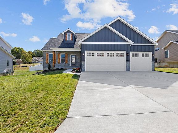 Experience modern luxury in this stunning Craftsman-style home, boasting 1,800 sq ft of thoughtfully designed space. Featuring 3 spacious bedrooms and 2 elegant bathrooms, the open and bright floor plan is enhanced by wide plank wood floors and coffered 10' ceilings with intricate wood inlays. The gourmet kitchen showcases custom navy and wood tone cabinets, honed granite counters, and under-counter lighting, perfect for culinary enthusiasts. Enjoy the practicality of having your laundry just steps away from the kitchen and living areas, making multitasking a breeze. Retreat to the primary suite with a walk-in closet and a spa-like bath featuring a custom tile shower and dual vessel sinks. Enjoy year-round comfort and efficiency in your insulated 3-car garage, making it ideal for automotive enthusiasts or as a versatile workspace. The expansive unfinished basement offers endless possibilities for your personal touch. Don't miss this exquisite blend of craftsmanship and modern living!