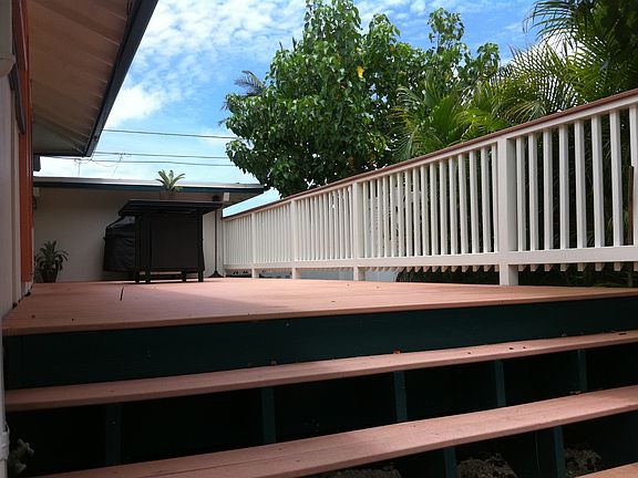 The best in Kailua living! In this quiet cul-de-sac is a charming and cozy 2 bedroom, 1 bath home, 1 car carport with additional driveway parking and storage, The exterior and Interior of this home has been newly painted, hard wood floors throughout, ceiling fans in all rooms, Upgraded kitchen with all major appliances, great cabinet space. Tropical landscape, fence backyard, a spacious 400 sq. ft. deck, washer/dryer. Pets are negotiable and upon approval of owner. Tenant pays all utilities, 1 year minimum lease, NO Smoking, A very short distance to bus line, shopping, schools, beaches and much more!