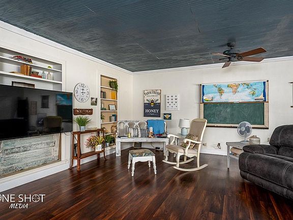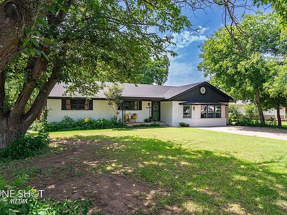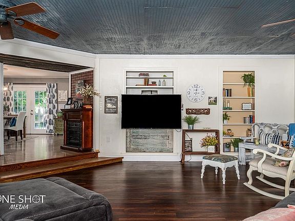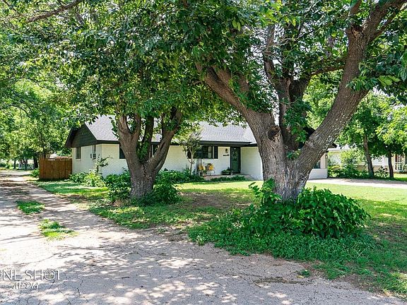 If you love being surrounded by trees but with the convenience of a bustling small town, this one is for you. You are greeted with massive mature pecan trees that provide year long shade. Freshly painted brick home gives a great updated look and a new roof this year as well. When you walk in you will get the feeling of home sweet home. There is an oversized living room for all the entertaining year round. The dining room and kitchen have tremendous natural light flowing in. Watch the birds outside the window while you cook in your double ovens or grab wine out of wine fridge. Main house bathroom has clawfoot tub. From the primary bedroom you can walk out onto a the secluded deck surrounded by greenery. In the mid yard there is RV hook up next to the 2 car workshop with carports. Towards the back you will find an old Train depot converted to guest quarters which is rented out for $900 a month. It has its own living, kitchen, bath and bedroom and spacious decks. There are 2 water wells