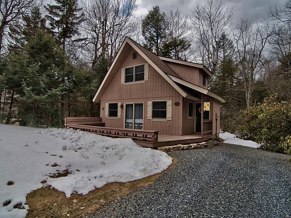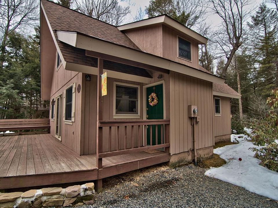 Country Chalet in immaculate condition. Offers 3 bedrooms, 2 full baths, large living area with fireplace and new carpet, kitchen/dining area with large breakfast bar, updated bathroom with double sinks, attic storage, mudroom, huge wrap around deck. All located in golf course community with world class 18 hole golf course, pool, tennis, clubhouse w/ restaurant, and fitness club. Must see!