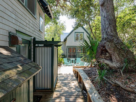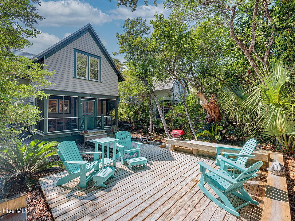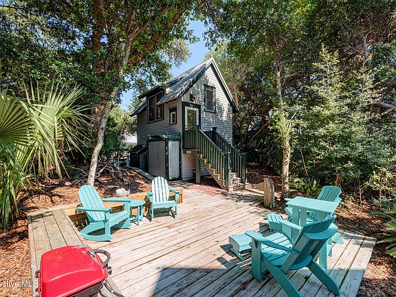 Well maintained Surfman's Walk home in a most desirable location on Chicamacomico Way. This home has 2 bedrooms and 2 1/2 baths in the main house and A THIRD BEDROOM AND FULL BATH IN THE CROFTER TOTAL 3 BR 3 1/2 baths and large outside shower hot and cold water. Between the Crofter and main house is a large wooden sun deck with new outdoor furniture. The HVAC was replaced in 2024 along with a new refrigerator. The main house has hardwood floors on the first floor and carpet in the upstairs bedrooms and Crofter. The bathroom is ceramic tile with the primary having a tub and tile shower. On the front of the main house is a screen porch with a new ratan sectional and table with 4 chairs. Continuing into the home you enter a well laid out kitchen with plenty of cabinets and a pantry also a new table and chairs have been purchased. There are ceiling fans throughout the home and crofter. A half bath is conveniently located between the kitchen and the living room. You will find a comfortable living room setting with a starfish chair setting the stage along with a new 60'' tv. The living room also has a screened porch off the back of the house with all new porch furniture. The love seat will also turn into a single bed on the porch. Leading upstairs is a stairway featuring hardwood raisers and treads. The washer and dryer are conveniently placed between the two bedrooms. The primary is a King and in bedroom #2 are two Singles. The crofter has a Queen. A unique item in Bedroom 2 is a large bean bag when unzipped turns into a Queen size bed. Plenty of closet space in the bedrooms with a large walk in in the primary. A new 50'' tv was purchased for the primary bedroom. This home is being sold furnished with exclusions and also has a BHI Equity Membership for separate purchase outside the purchase price. There is a green 2023 golf cart included. Looking for the perfect beach getaway on Bald Head Island near East Beach , then this is a must see. It will not last l