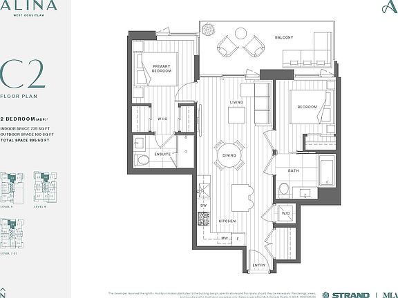 - Total interior livable area: 735 sqft