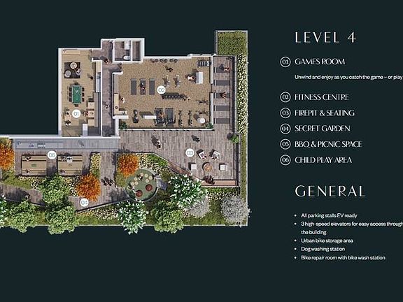 - Exterior features: Bicycle storage, Electric Vehicle Charging Station