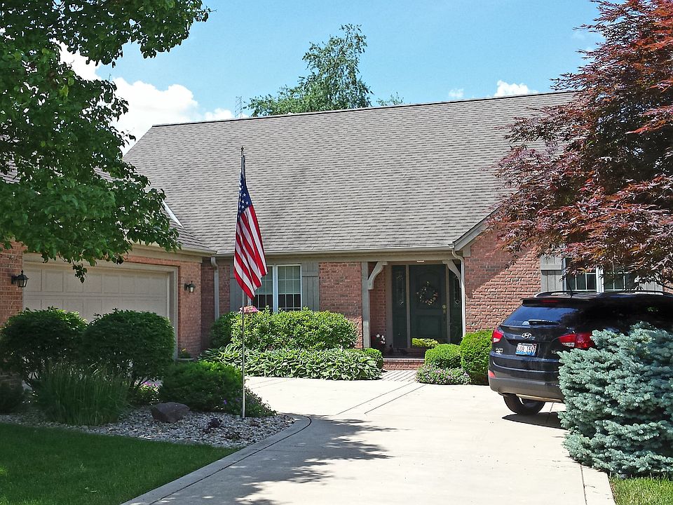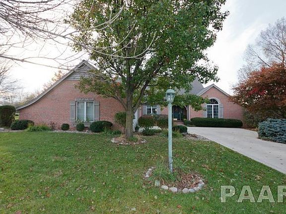 Spectacular brick ranch, 2 lots, fenced in yard, private back & side patio overlooking private lake. Formal dining room framed w/ elegant pillars, opens into large living room w/ vaulted ceiling, fireplace, and 2 sets of French doors into the side patio. Gorgeous 3 season room to relax and watch the sunsets in. Skylights in informal dining area brings in the beauty of natural light into the kitchen area. Wet bar in unique foyer area perfect for parties. Spacious MB with tray ceilings. Main floor laundry. Basement has opportunity for a 3rd bdrm, great rec room & billiard area.
