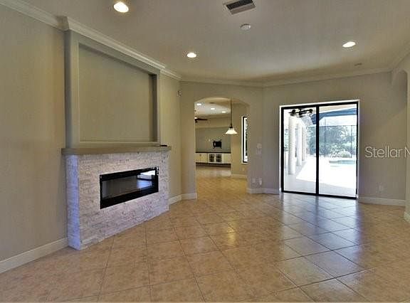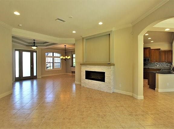 Located in the beautiful park-like community of Country Meadows, this 3,340 sq ft unfurnished home features 4 bedrooms, 3 full bathrooms, a home office, kitchen fit for a chef, open living area perfect for entertaining, bonus room complete with custom built in's, and massive 3 car garage with extra storage! With high ceilings and views of the pool in almost every room, this home truly has it all! Upon entering the home, you will find the formal dining room, private home office with custom built in shelves and the formal living area featuring a modern fireplace and views of the pool. The chef's kitchen overlooks the living area, and is complete with stainless steel appliances, french door refrigerator, solid wood cabinets, granite countertops, butler's pantry, built in desk, and a breakfast bar. Features of the master suite include walk in closets and private sliders leading to the screened lanai and pool, while the en-suite bath boast a walk-in shower, whirlpool bath, and dual sinks. Three spacious guest bedrooms, two full baths, and a large one-of-a-kind bonus room, highlight the homes split floor plan. No small detail has been overlooked in this high-end home and the lavish touches aren't restricted to the just the inside. The outdoor oasis is an entertainer's dream! An oversized screened lanai and covered patio house an incredible outdoor kitchen, salt water pool with spa, tranquil koi pond, and fire pit. Pool, lawn and koi pond care are included in the rent!
