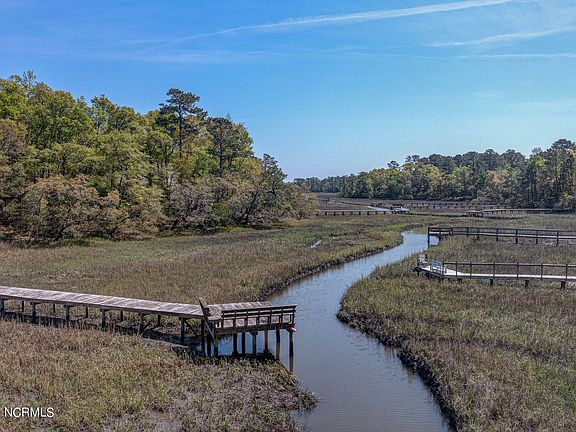 We have been referring to this one-of-a-kind property as Endless Possibilities...With over 2 acres of land and more than 250 feet of water frontage on Futch Creek, there are so many possibilities with this NO HOA property!  The existing 2-story home sits high on a bluff looking out over the marsh grass and Futch Creek.  This special property can be kept intact as it has been enjoyed by the current owners for years or create up to FOUR separate parcels – a proposed subdivision and soil study have already been conducted!   There is also the option of living in the existing home while you build your dream home, creating a retreat to host gatherings of family and friends. This coastal farmhouse is 2200 square feet in the main house with 3 bedrooms, bonus room, office and 3 full bathrooms.  There also is a detached garage with upstairs living space and a half bath.  The kitchen has been updated with stainless steel appliances, quartz countertops, a Viking cooktop and new fixtures. The light-filled living room has a wood-burning fireplace and perfect views of your private pier. The owners of this home have made many improvements and updates through the years, including new roof, encapsulated crawlspace w/ dehumidifier, addition of a water softener, replaced HVAC units, new water heater, adding sprinklers to the garden beds, gutters, replaced window sashes, addition of lean-to roof to the outbuilding, renovation of primary bathroom, new decking, new dock, and more.  There is still time to plant your spring garden in the fenced courtyard with raised beds.  After a day on the boat, enjoy an outdoor shower in the beautiful, custom Epi shower. Come see the flowering trees, climbing roses and listen to the songbirds at this beautiful parcel of land.   Call today for a private showing tour!