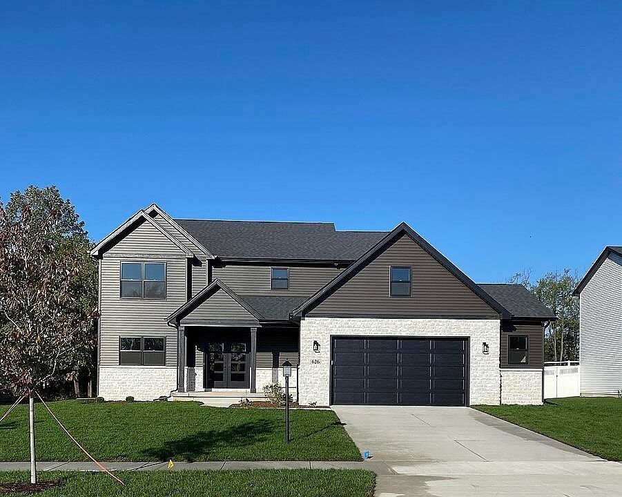 This stunning 1.5-story Custom Olivia is perfectly positioned on a spacious lot with serene views and no rear neighbors--the ultimate private retreat. Built with 2x6 construction and a 2-car finished garage with extended workshop space, this home is designed for both durability and everyday convenience. Step through the striking double front doors into a magnificent 2-story great room. Floor-to-ceiling windows flood the space with natural light, while a custom 2-story fireplace creates warmth and charm. The open layout flows seamlessly into the dinette and chef-inspired kitchen featuring crisp white cabinetry, quartz countertops, an oversized extended island, and a walk-in pantry--perfect for hosting and everyday living. Just off the foyer, a versatile flex room offers endless options--home office, dining, or play space. Upstairs, the primary retreat boasts a dropped tray ceiling, spacious walk-in closet, and spa-like ensuite with quartz countertops, dual sinks, and a luxurious tiled shower. Three additional bedrooms provide room for family or guests--plus the convenience of a second-floor laundry designed to simplify your daily routine. The unfinished basement, already plumbed for a future bathroom, offers endless opportunities for customization. Outside, enjoy the full landscaping package and patio--bringing beauty and low-maintenance living to your outdoor space.