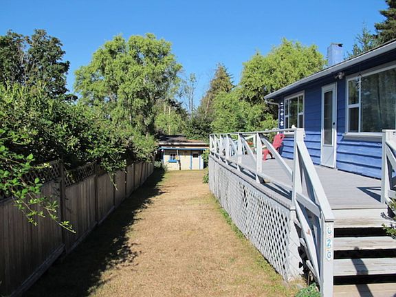 Very private and fully fenced yard with blackberries, figs and apples at your fingertips. This two bedroom beach cottage sports a new windows and floors, a huge deck and is only a five minute walk to private beach.