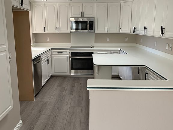 - KITCHEN FEATURES: 220 Volt Outlet, Dishwasher, Electric Range/Cooktop, Garbage Disposal, Microwave, Counter - Solid Surface, Range/Oven Built-in, Updated Kitchen, Breakfast Bar, Skylight(s), Oven Built-in