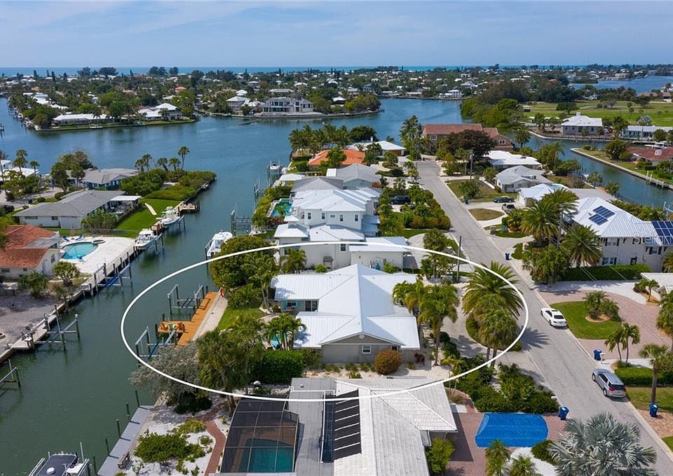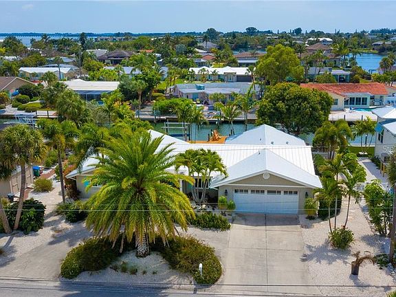 Nothing to do but move in to this updated four bed, two and a half bath canal front home. A major renovation was done in 2016-17, including impact windows, sliders, garage door and Metal roof. Meticulous owners have recently added two new water heaters, pool heater, quartz bathroom countertops, landscaping and electrical plug outside for generator or RV. The air conditioned storage room was turned into a private fourth bedroom with access to half bath. The perfect entertaining home entering into a large living/dining combo with a wall of sliders out to a paver patio and heated pool. There is a great shade tree and grassy area, overlooking the water, to enjoy a good book. If you're looking to jump on your fishing boat, but want your pontoon too, both the 12K and 10K pound boat lifts are already in place. It's easy to launch kayaks or paddleboards, catch a few fish or sit and watch sunsets on the oversized treks deck. Another slider leads into the vaulted family room with built in shelving, desk area and breakfast/serving bar wrapping around to the open kitchen, back laundry room and garage access. There are two additional oversized bedrooms, one with the current barn door slider, both sharing a full bath. The private, oversized Master bedroom features a large walk in closets with custom shelving, an additional closet and a nice size bathroom with walk in shower and double sinks. There is an additional slider for outside pool access. This home is set apart from most others and perfect for year round living, second home or investment for future. Minutes to the Gulf beaches, restaurants and shopping. Come and see why Island boating and living is so magical! Flood Insurance $3622. Homeowners $3966. Water/Sewer/Trash 100-150 month