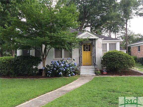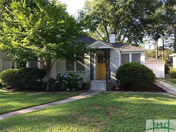 Charming cottage on one of Ardsley Park's best blocks! The front landscaping is anchored by a mature Japanese maple tree and hydrangea that seasonally bathe the home in explosions of color. Bright, well-planned living room with beautiful hardwood floor and a fireplace with unique pink marble. The recently renovated bathroom features marble tile with radiant floor heating. Adjacent to the formal dining room, the kitchen has a fantastic built-in breakfast nook: the custom wall treatment was hand done by a local artist and adds so much charm! The bright kitchen has a window over the sink, stainless steel appliances, and side door. The bonus room has a built-in desk, laundry hook-ups, and access to rear garden. The generous rear yard features a mature Pink Saucer magnolia as well as a Camellia grove, encircling a space large enough to accommodate a fire pit. There are two detached garages with their own driveway, and one will allow both street and lane access. What a great family home!